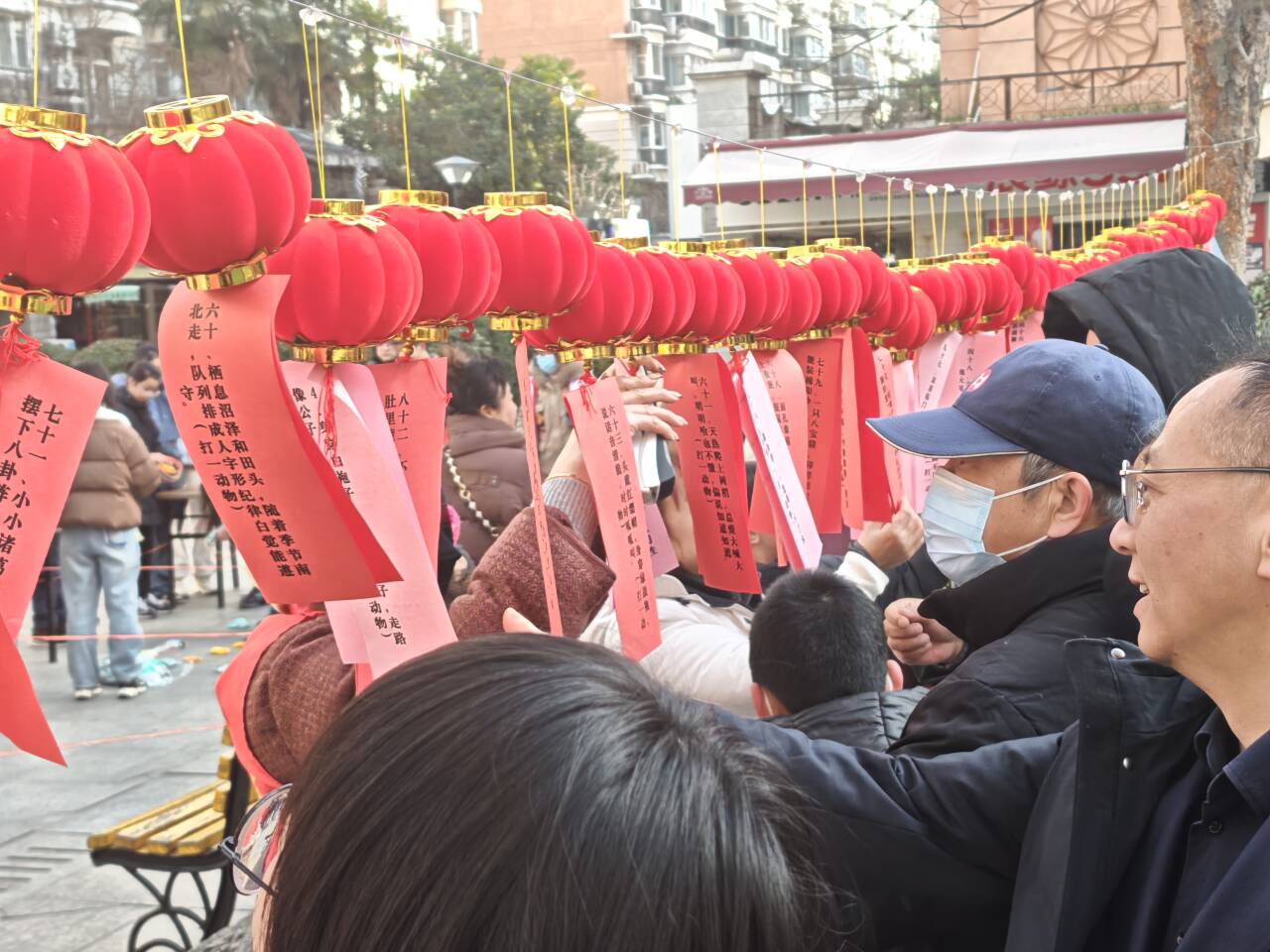 工联会志愿者们早早来到广场上,将五彩的灯谜与灯笼挂在一起,显得格外喜庆。随风飘荡的谜语条吸引了小区居民的目光,大家纷纷围了上来,开始驻足认真地猜灯谜。谜题囊括了廉政、俗语、动物、字谜等题材,内容多元化,难度层次化。为元宵节活动增添了一道靓丽的风景线,现场欢声笑语,其乐融融。