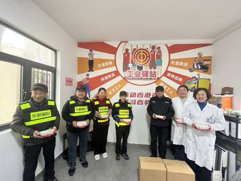 活动现场,工会志愿者早早备好热腾腾的汤圆与姜茶,邀请结束工作的保洁、保安等劳动者品尝。一位物业保安感动地说:“平时忙着维护社区安全,没想到元宵节能在驿站吃到现煮的汤圆,心里特别暖!”