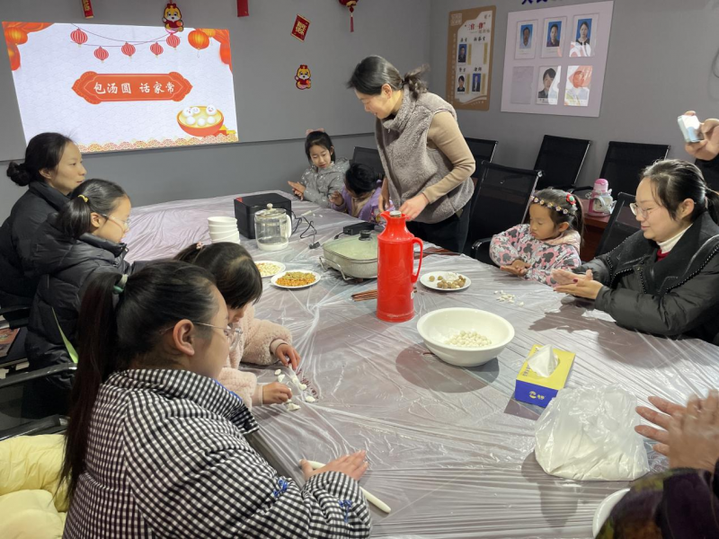 随后,进入元宵知识科普环节,志愿者通过图文并茂的展示和趣味小故事,生动讲述了元宵节赏灯、猜谜、吃汤圆的习俗渊源。“原来元宵节在古代还是情人节呀!”孩子们对传统节日中蕴含的文化智慧充满好奇,在互动抢答中加深了对传统文化的认知。紧接着,来到最受期待的做汤圆环节,孩子们和志愿者一起动手揉面、搓汤圆,不一会儿,一个个圆润饱满的汤圆就摆满了盘子,虽然手法略显稚嫩,但每一个汤圆都饱含着大家对美好生活的期待。当热气腾腾的汤圆端上桌,大家一起品尝着自己的劳动成果,欢声笑语回荡在整个活动现场。