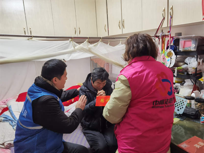 近日,常州市金坛区西城街道愚池社区妇联和工会代表探望慰问因病住院的女性网格员于金妹,为她送去组织的关怀和温暖。