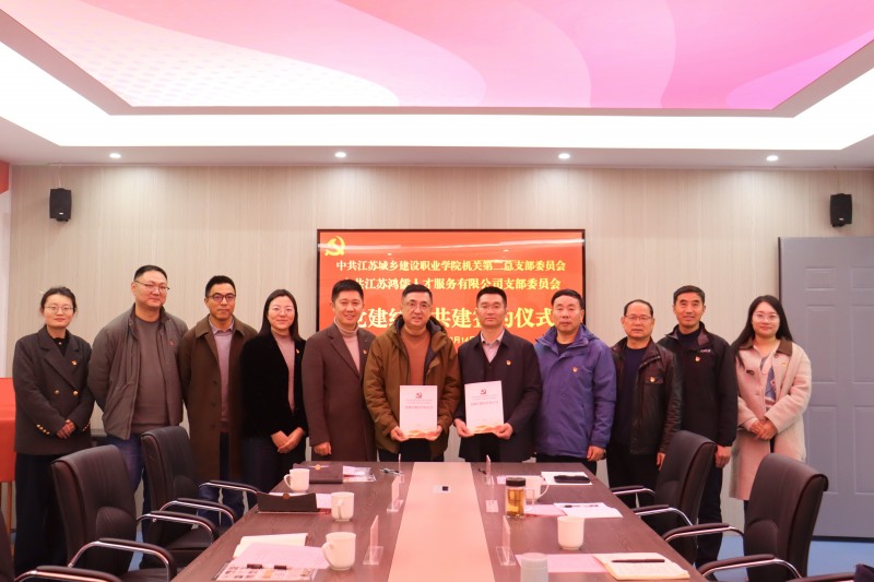 为深入推进产业工人队伍建设改革,充分发挥党建引领作用,加强基层党组织建设,近日,武进工匠学院—江苏鸿儒人才服务有限公司党支部与江苏城乡建设职业学院机关第二党总支结对交流,并举行了以“匠心筑梦,党建引领技能提升”为主题的党建共建签约仪式。江苏城乡建设职业学院机关第二党总支书记苑彤,副书记刘波,武进工匠学院执行院长、鸿儒人才党支部书记周树明,鸿儒党建指导员、原武进区委组织部副部长莫健新参加活动。