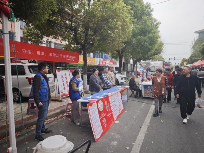 镇总工会在薛埠镇集场上开展宣传活动,这里人流量较大,能够覆盖到更多的职工和群众。活动现场设置了两块展板,展板内容丰富多样,通过图文并茂的方式向大家展示了国家安全教育的重要性、国家安全涵盖的各个方面等知识。这些展板吸引了众多过往行人的目光,他们纷纷驻足观看,不少人还在展板前相互讨论交流。