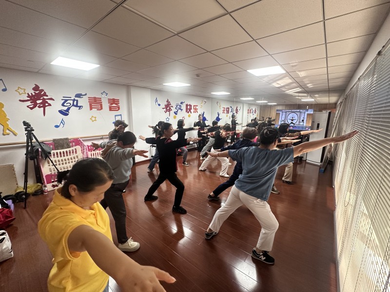 理论授课结束后,进入实践练习环节。在舒缓的音乐声中,周老师带领学员们开始练习。从基础的“调息导引式”调整呼吸节奏,到“脊柱扭转式”改善体态,再到“腿部拉伸式”增强下肢力量,每个动作老师都亲自示范,并走到学员身边纠正姿势。学员们神情专注,跟随老师的口令,慢慢伸展肢体、放松身心。65 岁的杨阿姨在练习后兴奋地说:“这个导引健身瑜伽感觉很不一样,动作轻柔但全身都活动开了,练完浑身轻松,回家我要坚持练!”