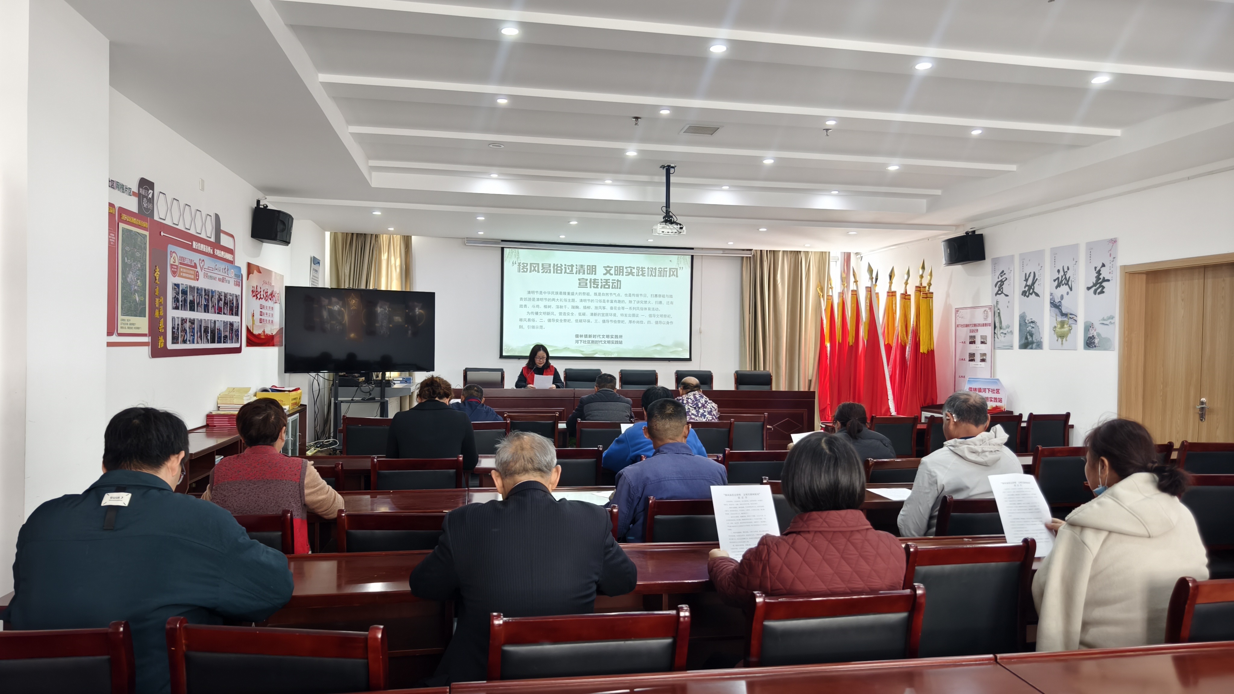 近日,常州市金坛区儒林镇河下社区工联会在社区活动中心,成功开展“移风易俗过清明 文明实践树新风” 宣传活动,旨在引导居民摒弃祭祀陋习,践行文明新风尚,共有20位社区居民积极参与。