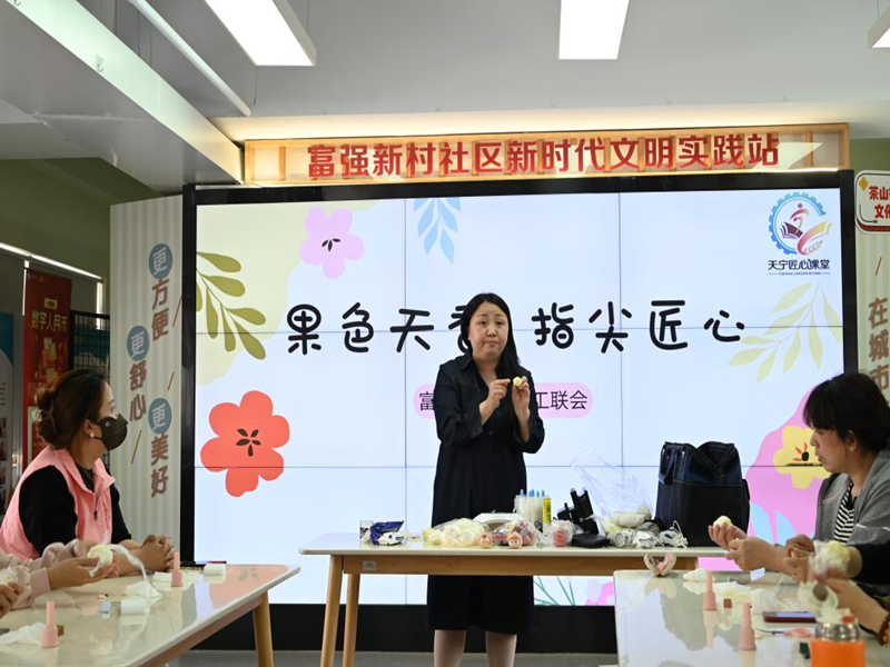为庆祝春天的到来,丰富工会职工的文化生活,激发大家的创作热情,4月16日下午两点,茶山街道富强新村社区工会联合会在党群服务中心举办了主题为“果色天香 指尖匠人”手工树脂桃子制作活动。