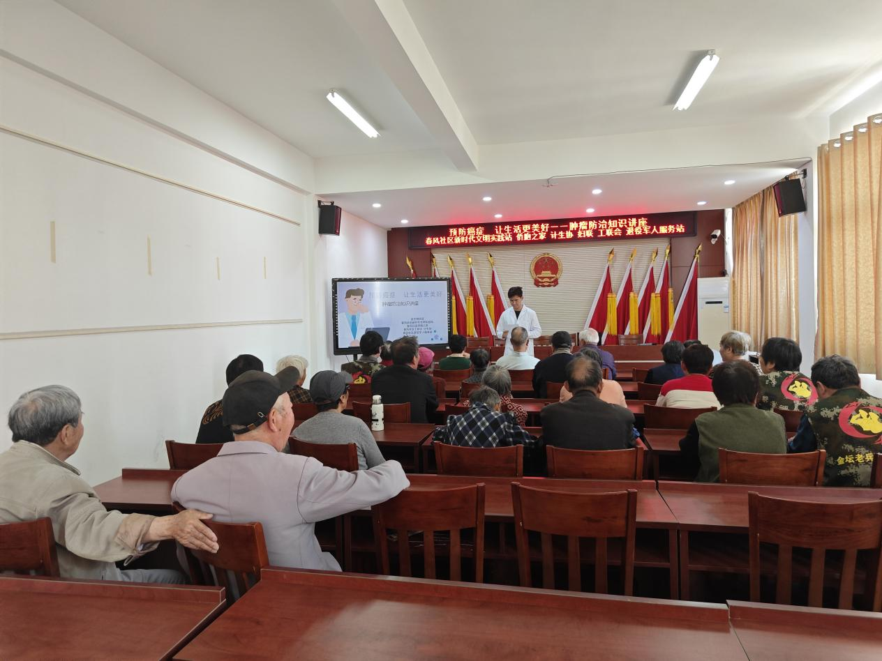为进一步提高全社会癌症防控意识,营造全民防癌抗癌的良好氛围,4月29日,常州市金坛区金城镇春风社区工联会邀请春风社区卫生服务站为居民们开展了“预防癌症,让生活更美好”肿瘤防治知识讲座。