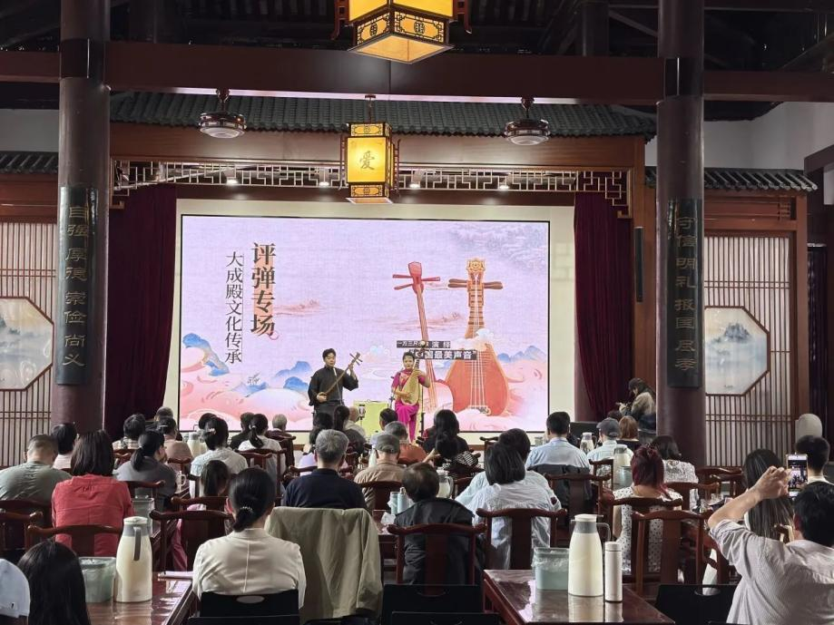 5月1日至2日,“大成殿非遗文化传承评弹专场”连续两日精彩开演,场场座无虚席。演出中,演员们以灵动的语调、细腻的唱腔,在三尺书台上重现古代文人的风雅生活,吴侬软语诉说着江南的千年韵致。
