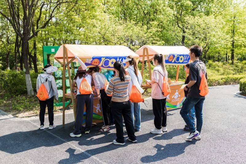 途中设置的四个互动点位更是为活动增添了不少乐趣。在见义勇为主题公园、皮划艇码头、全民义务植树展览馆、法律援助主题公园这四个打卡点,职工们参与小游戏和工运知识盲盒问答,现场气氛热烈。