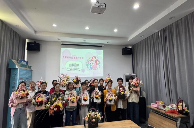 最令人期待的当属插花环节,将高雅艺术融入温馨现场。桌上摆放着各色鲜花,大家在志愿者老师的讲解示范下,充分发挥创意,修剪枝叶、精心搭配,将枝条花朵巧妙组合,制作出一束束独具匠心的花束。每一束花都承载着对生活的热爱、对美的追求,以及对母亲角色的深刻感悟。最后,大家手捧花束,留下了一张张洋溢着幸福与喜悦的合影,定格下这美好瞬间。