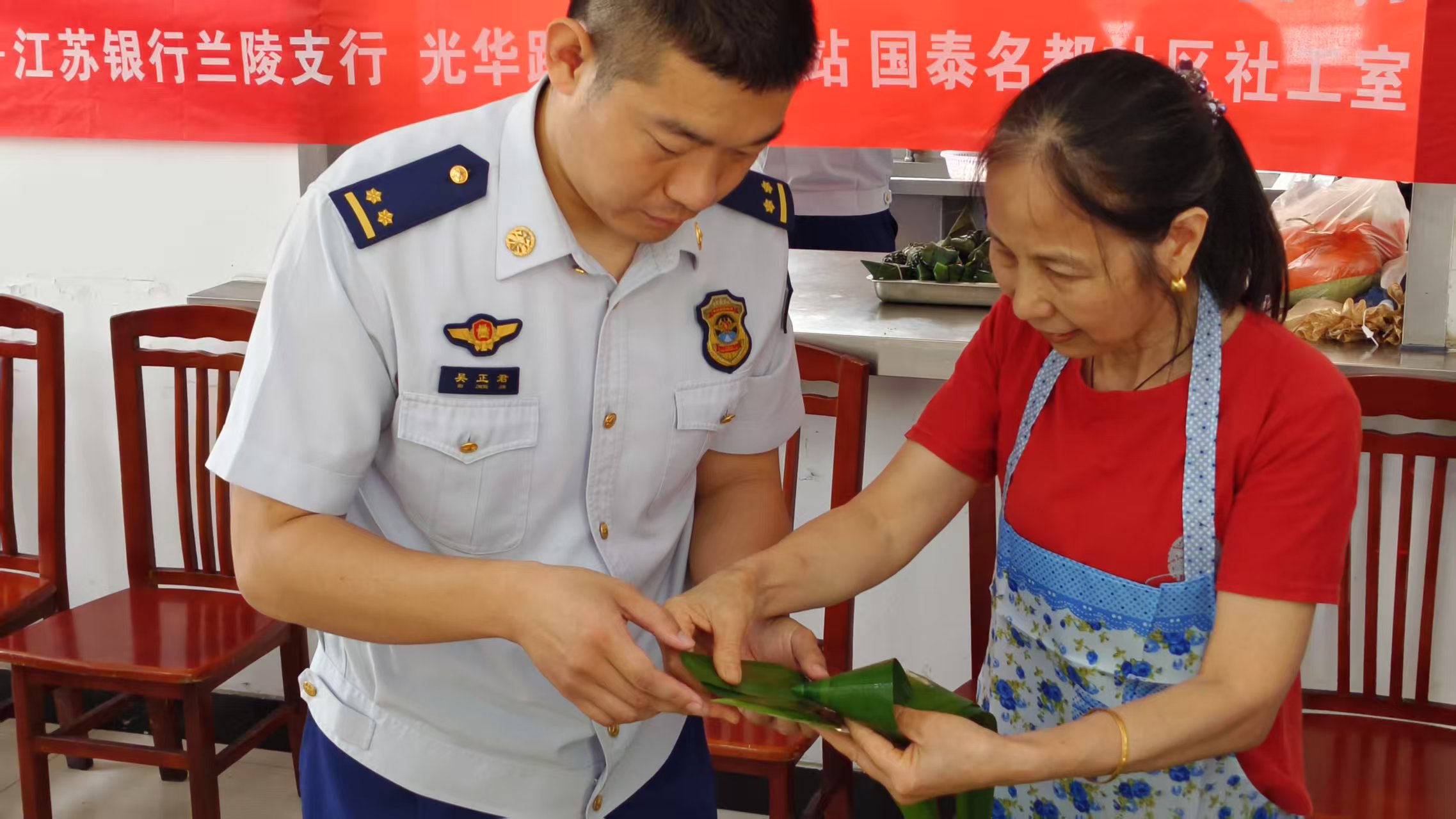 端午粽飘香,关爱暖人心。近日,国泰名都社区工联会携手江苏银行兰陵支行、光华路消防救援站以及天问职业培训学校,开展了一场别开生面的共建活动。活动以“包粽子、送温暖”为主题,同时也迎来了一位特殊的参与者——外卖小哥李园园,展现出城市新就业群体融入社区、服务社区的积极姿态。