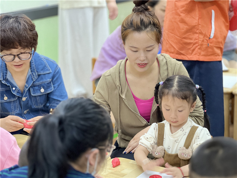 活动内容丰富多彩、寓教于乐。孩子们在老师的带领下,用稚嫩的小手表演了充满爱意的母亲节手指舞,赢得家长们的热烈掌声。随后进行的套圈亲子游戏让大小朋友齐上阵,既增进了亲子感情,也带来了不少欢乐。“喂妈妈吃西瓜”环节更是温情满满,孩子们细心地将甜甜的西瓜送到妈妈口中,传递浓浓爱意。最后,大家共同参与黏土手工花制作,一朵朵鲜艳的手工花承载着孩子对妈妈的节日祝福。