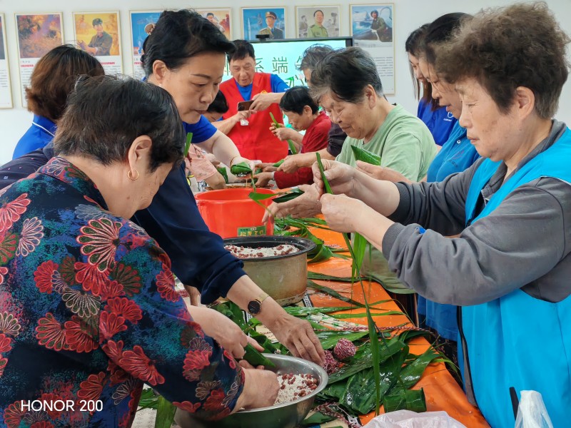 活动当天,社区活动室里热闹非凡,志愿者们围坐在一起,开始了包粽子的“爱心行动”。大家各显身手,捋粽叶、做漏斗状、填糯米、压紧实、封口、扎捆,巧手翻飞。在大家的共同努力下,一个个饱含着爱心与祝福的粽子很快就装满了盆,空气中弥漫着粽叶的清香和糯米的甜香。