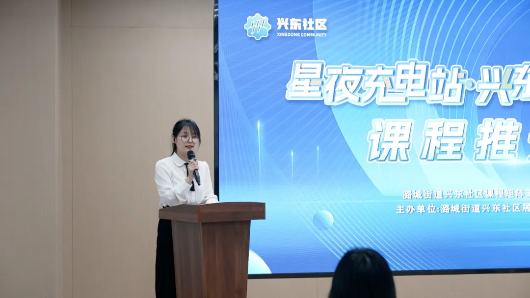 兴东社区曹琳现场发布第二期职工夜校课程矩阵,精心设计了覆盖生活美学、健康身心、艺术修养与实用技能的10门课程,丰富的课程设置,旨在满足职工多样化的学习需求,让每个参与者都能在“星夜新空间”中找到属于自己的成长方向。
