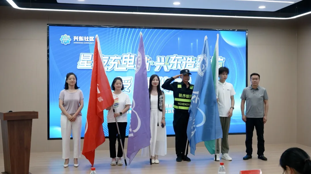 启动仪式上,四支特色志愿服务队精彩亮相。“微光聚力”队:企业微网格员化身基层“神经触角”,精准感知需求、反馈建议;“星火先锋”队:夜校学员骨干经训赋能,投身主持、摄影、市集等社区服务;“护企安园”队:整合规上企业保安力量,日夜巡守护航社区安全;“安全互助”队:企业安管员互查互助,示范引领提升全域安全水平。经开区总工会副主席张莉、轨道交通产业园管理办公室副主任蒋诚为队伍代表授予队旗,并发布徽章,这象征着“星火启能工程”正式落地。