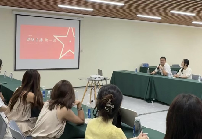座谈会上,苏南智城招商负责人首先向与会代表详细介绍了园区在支持直播电商产业发展方面的独特优势和配套服务。随后,武进区主播行业工联会主席吴林峰就行业趋势、主播职业素养等话题与大家进行了分享交流。