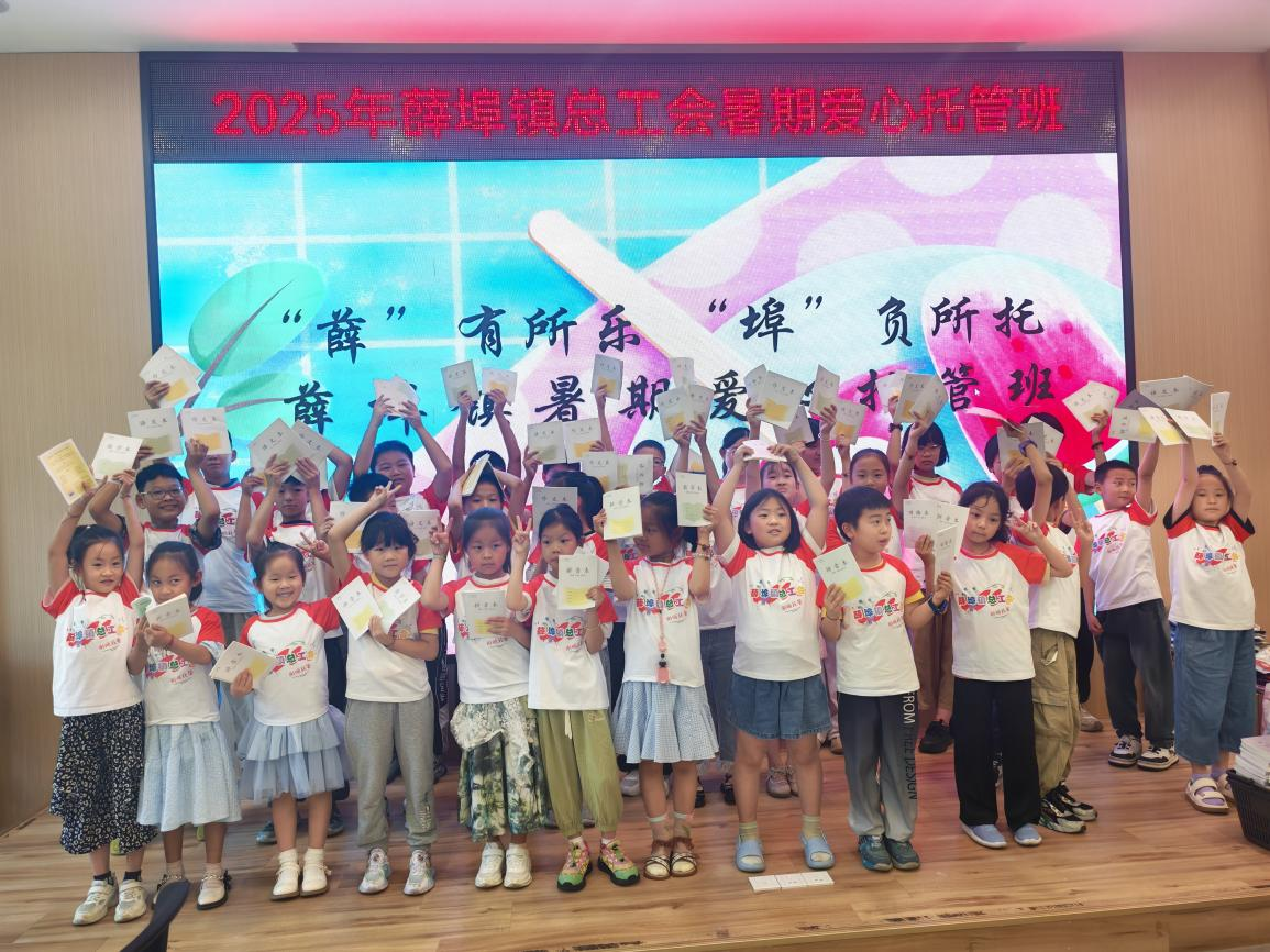 7月1日,薛埠镇新时代文明实践所内欢声笑语不断,2025年薛埠镇暑期爱心暑托班正式开班啦!小朋友们穿着定制款“‘薛’有所乐,‘埠’负所托”短袖蹦蹦跳跳,家长们举着手机记录开学瞬间:“去年就听说特别好,今年终于抢到名额啦!”今年,暑托班全面升级,报名人数达78人,其中外来务工职工子女达40人,再创新高。