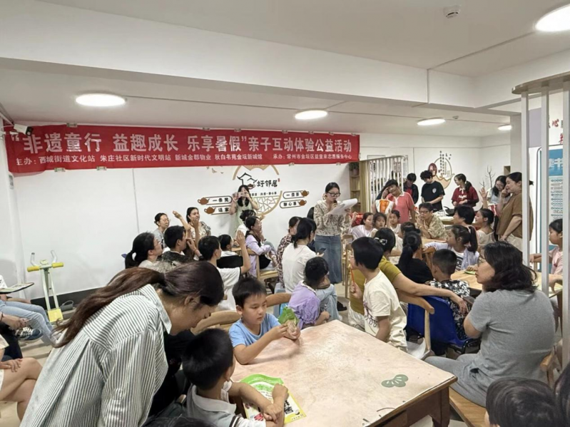 近日,金坛区西城街道朱庄社区工联会携手秋白书院金坛馆在金郡花园开展“非遗童行,益趣成长,乐享暑假”职工亲子主题活动。现场吸引辖区50多对企业职工家庭踊跃参与,共同开启了一段美好的回忆。