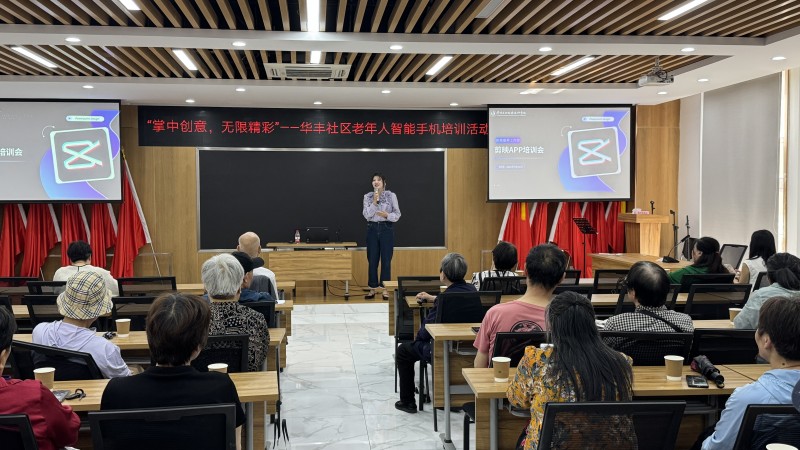 为帮助社区老年人跨越“数字鸿沟”,掌握智能手机应用技能,丰富晚年精神文化生活,华丰社区工联会于5月14日在社区二楼会议室开展了老年人智能手机培训——剪映视频创作专题活动,吸引了众多老年居民的参与。