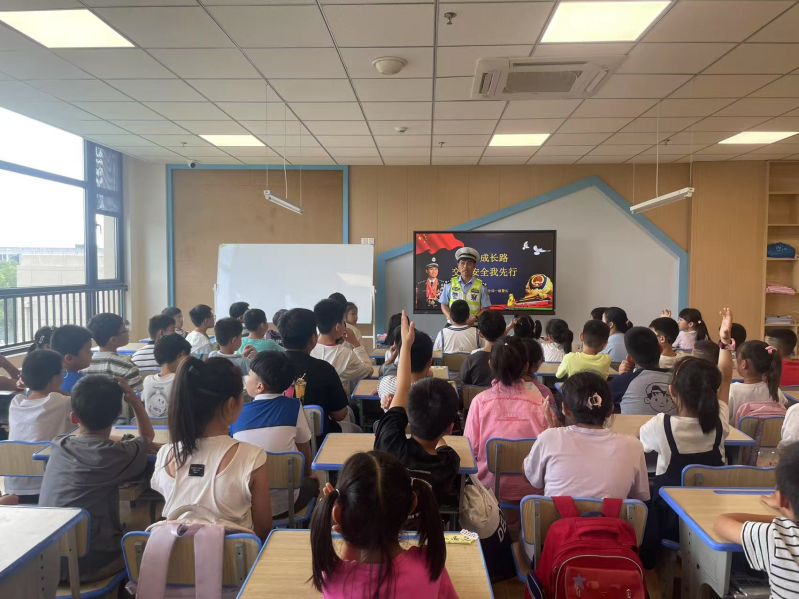 讲座中,陆警官不仅传授安全知识,更以自身数十年如一日坚守岗位的感人事迹,为孩子们树立了爱岗敬业的榜样。互动环节气氛热烈,孩子们踊跃提问,陆警官耐心细致地解答每一个问题。这堂生动有趣的安全课赢得了现场阵阵掌声。