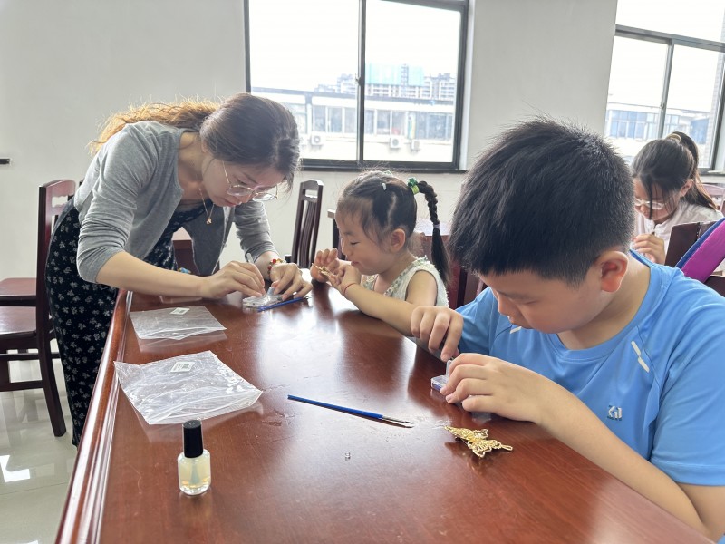 活动中,陈老师首先向孩子们讲述螺钿的历史与文化内涵,随后大家一同学习如何将普通的贝壳碎片变成精美的蝴蝶胸针。孩子们指尖在贝壳与胶水间穿梭,一位参与活动的职工分享道:“我以前是当兵的,在部队时,我们经历过严格的训练,就像蝴蝶破茧的过程,只有经历磨砺,才能展翅飞翔。”孩子们在制作过程中,也逐渐理解到坚持与耐心的重要性——正如螺钿工艺需要反复调整才能完美。
