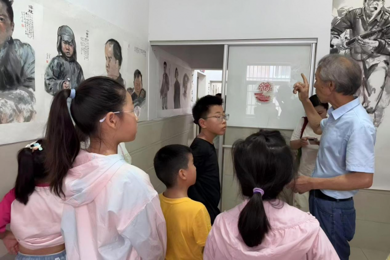 本次画展展出了佘云祥先生精心创作的多幅抗战主题画作,生动展现了革命先辈们为守护家国、抗击侵略者挺身而出的英勇身姿,刻画了他们不畏牺牲、坚毅不屈的民族气节,深刻诠释了伟大的抗战精神。社区老党员和退役军人们结合画作,向孩子们讲述了抗战时期中华儿女不屈不挠、英勇抗争的光辉故事,让红色基因在潜移默化中代代相传。一幅幅饱含深情的画作,仿佛将大家带回到那段可歌可泣的历史中,让每一位观众深切体会到革命先辈的崇高精神,激发了强烈的民族自豪感和爱国之情。