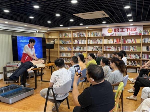 培训由红梅医院高强医生主讲,高医生从理论知识讲解和实际操作入手,系统生动地介绍红十字知识、救护新概念、心肺复苏术、自动体外除颤器(AED)使用等内容。高医生借助人体模型等辅助教具进行演示,并邀请学员参与实操,指正实操动作、讲解应对技巧,让职工朋友们更为直观了解应急救护知识,更快掌握救急避险技能。