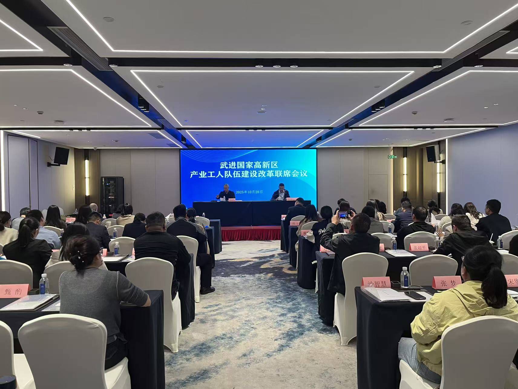 近日,武进国家高新区召开产业工人队伍建设改革联席会议暨产改工作专题培训,进一步统一思想、凝聚共识、压实责任,推动高新区产改工作向纵深发展。高新区管委会副主任、产改联席会议召集人恽益明,产改联席会议成员单位分管负责人及各产改试点企业工会主席等约60人参加会议。