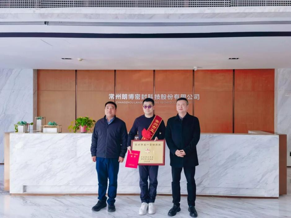 随后,吴志高、黄巍一行来到常州朗博密封科技股份有限公司,为企业颁发“常州市五一劳动奖状”奖牌。这一荣誉表彰了朗博科技在技术创新、生产经营、职工权益保障和企业社会责任等方面取得的突出成绩。