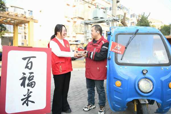 随后,大家一同将收集到的五彩杂粮,细心装入红彤彤的福袋中。快递员小于手握沉甸甸的福袋,笑着说:“平时配送时,常收到居民递来的热水、纸巾,心里早就暖乎乎的。这次能参与活动,感觉特别亲切,就像回到了自家小院!”一旁的居民潘阿姨连忙回应:“你们风里来、雨里去,为我们的生活提供了太多便利。这袋福米带着大家的心意,希望你们新的一年平平安安、顺顺利利!”欢声笑语间,陌生感悄然消散,邻里间的温情在指尖流转、在话语中不断升温。