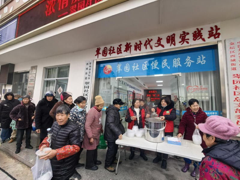 腊月初八,粥暖情浓。1月26日正值传统腊八节,金坛区西城街道翠园社区工联会联合社会爱心组织普福观共同开展“浓情腊八 温暖‘粥’到”公益活动。在社区门口为居民免费发放腊八粥,将冬日的温暖与节日的祝福送到家家户户。
